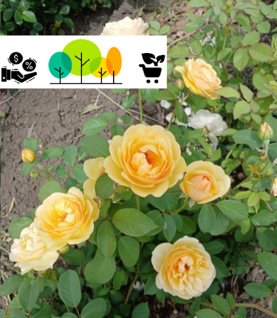 Virágai telt szirmúak, csésze alakúak, aranyló sárga színűek, és kellemes, gyümölcsös-teás illatúak.